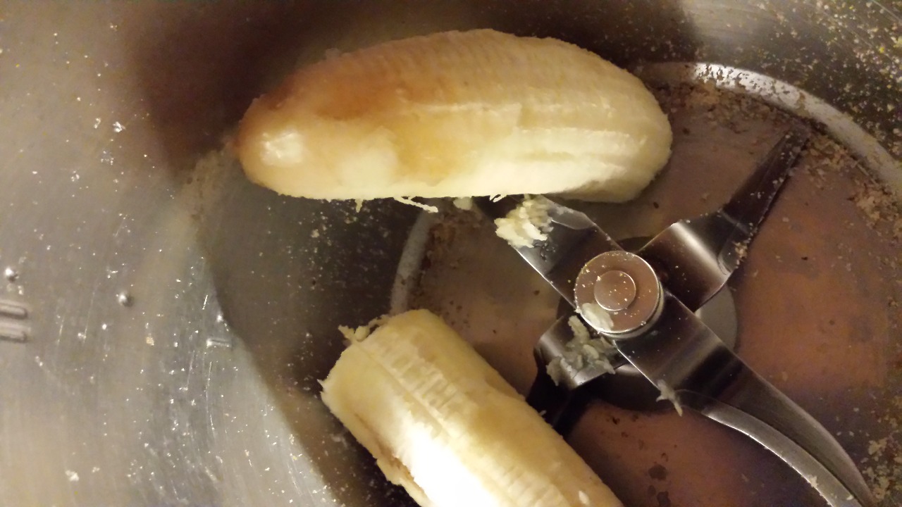 Incorporam el plàtan, les nous, el iogurt, la farina amb el llevat, la sal i programam 4 segons velocitat 4.
