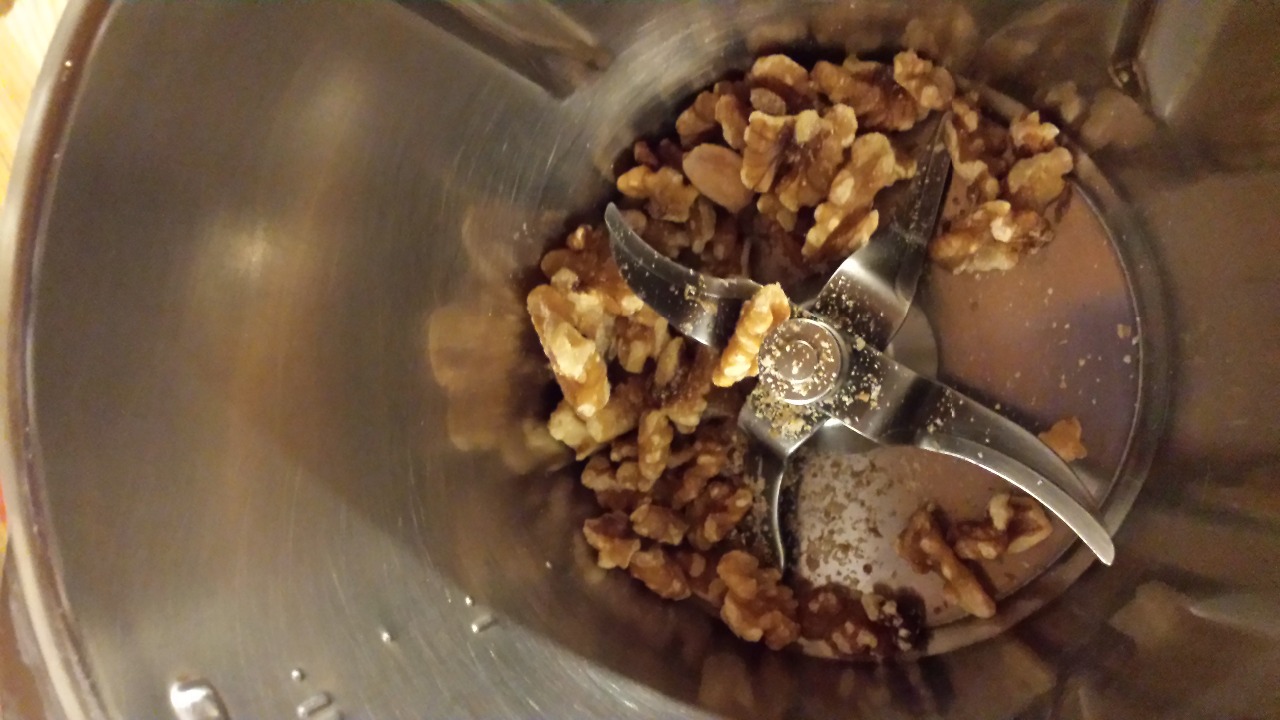 Posam al tassó el plàtan i trituram 3 segons velocitat 4. Reservam amb les nous.
